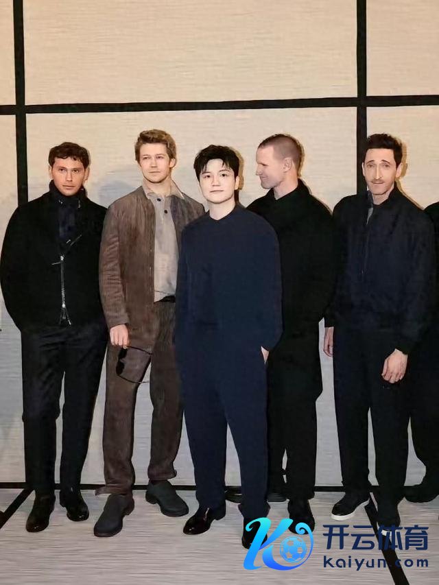 像片中,樊振东身着自在装,站在四位躯壳魁岸的好莱坞影星之间,却涓滴未显失容。