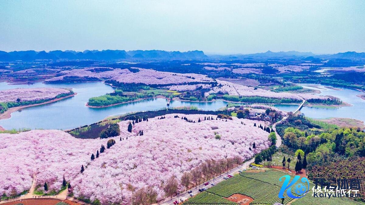每逢3月盛花期,贵州平坝2.4 万亩粉樱,落在红枫湖100多个孤立小岛,早樱如雪,晚樱似霞,死力般花着花落。充盈湖畔、小路、茶园,没头没脑地盛开出一个樱花国家。