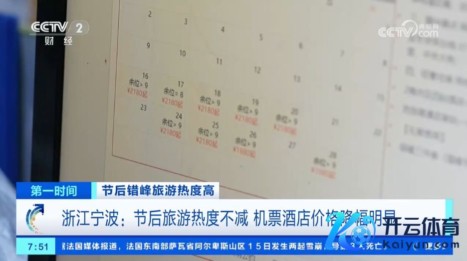 2月15日、16日,央视《新闻直播间》《经济信息联播》《天地财经》《第一时刻》栏目播出《浙江宁波 节后旅游热度不减 机票旅店价钱降一半》,报谈了春节假期事后,旅游市集又迎来了一波错峰游兴隆。在宁波,多地机票、旅店均价相较于春节假期回落近一半kaiyun网站,诱导了不少搭客开启说走就走的旅行。