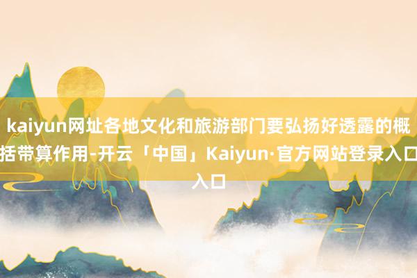 kaiyun网址各地文化和旅游部门要弘扬好透露的概括带算作用-开云「中国」Kaiyun·官方网站登录入口北京商报讯(记者吴其芸)12月16日,据文旅部官网音讯,现详情“冬奥之城·冰雪长城”“晋好意思冰雪·古建瑰宝”“相约北疆·乐享雪原”“欢娱冰雪·冬韵辽宁”“梦境冰雪·‘吉’致世界”“大好意思龙江·畅通冰雪”“冬游华夏·闾里河南”“至友湖北·南国冰雪”“巴渝雪韵·梦境之旅”“蜀山冰雪·欢然四川”“冬韵陕西·雪泉共舞”“大好意思新疆
