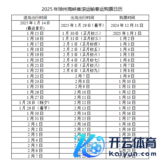 2025年琼州海峡客滚输送春运购票日期