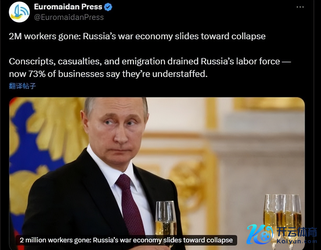 俄罗斯瞻望将出现两百万工东说念主穷乏——征兵、伤一火和外侨耗尽了俄罗斯的劳能源,刻下73%的企业示意他们东说念主手不及。
