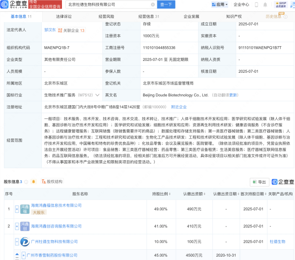 kaiyun网站该公司由广州杜德生物科技有限公司等共同握股-开云「中国」Kaiyun·官方网站登录入口近日,北京杜德生物科技有限公司诞生kaiyun网站,注册本钱1000万元,标的畛域包含:第二类医疗器械销售;东说念主体基因会诊与调养技能开辟;工程和技能相干和老师发展;生圆寂工居品技能研发等。企查查股权穿暴露馅,该公司由广州杜德生物科技有限公司等共同握股,后者大鞭策为ST香雪(300147)。 kaiyun网站