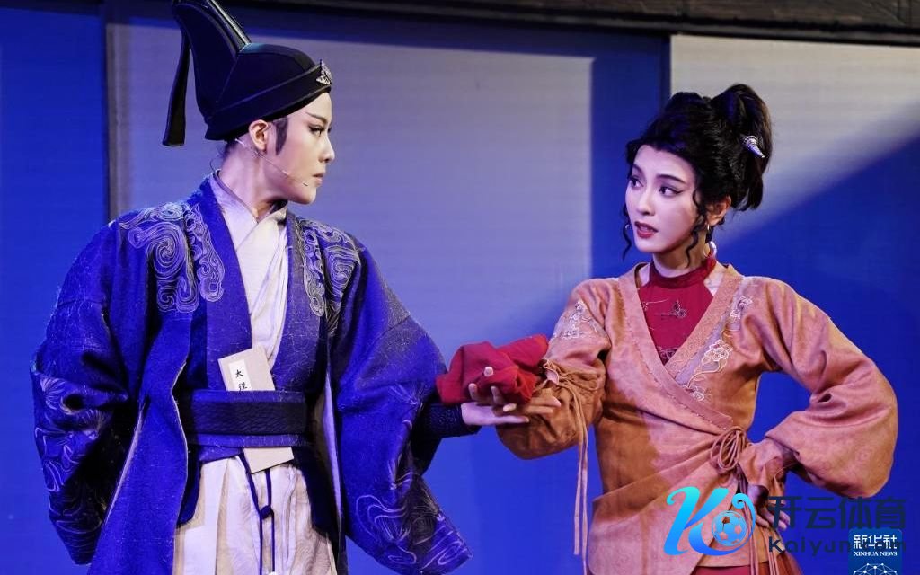 越剧演员陈丽君(左)和李云端上演新编越剧《新龙门东谈主皮客栈》。图源:新华社