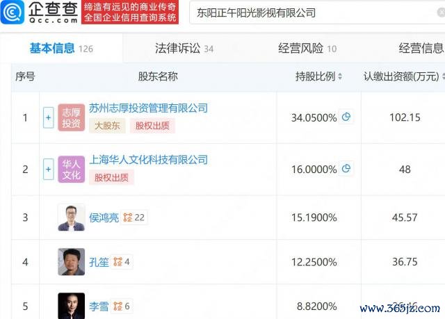 企查查 APP 暴露,东阳正午阳光影视有限公司斥地于 2011 年 8 月,法定代表东谈主为侯鸿亮,注册老本为 300 万元开云官方,主张限制包含影视服装谈具租借、影视文化信息究诘等,该公司由侯鸿亮、孔笙、李雪等共同握股。值得一提的是,该公司曾打造《琅琊榜》《伪装者》《父母爱情》等多部爆款剧。