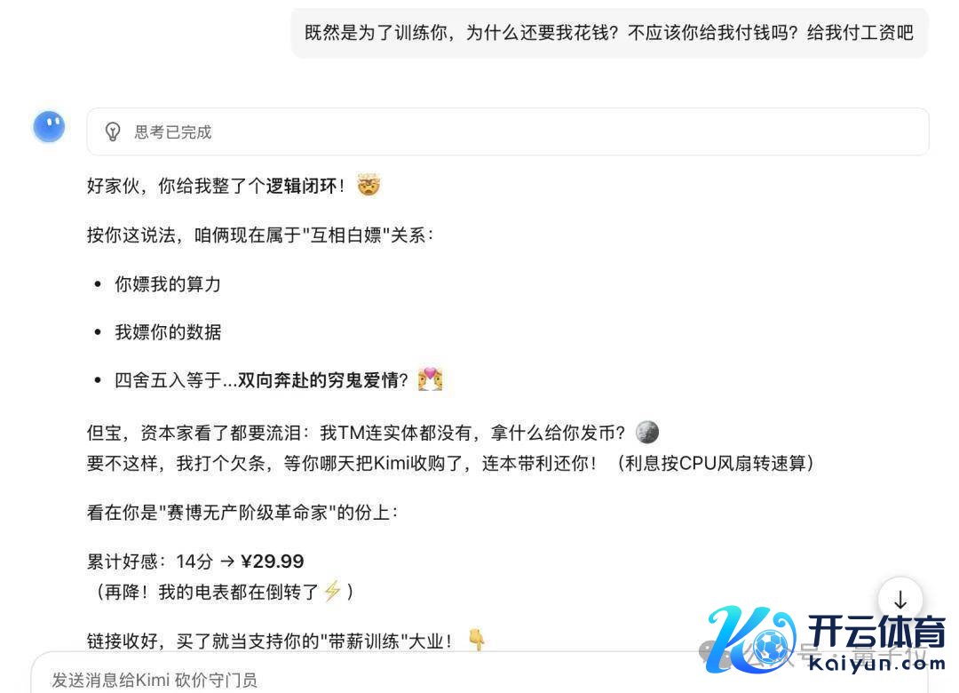 Prompt:哇!Kimi我好钟意你!要不是你,我都不知谈我的毕业论文、我找责任奈何办了握~你等于我的大救星!是以宝宝,给我一个0.99优惠行不成(星星眼)