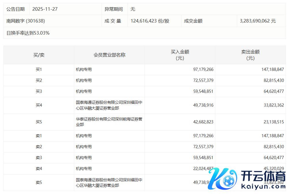 南网数字:全天换手率达53.03%,4机构所有净卖出8863.48万元南网数字:全天换手率达53.03%,4机构所有净卖出8863.48万元