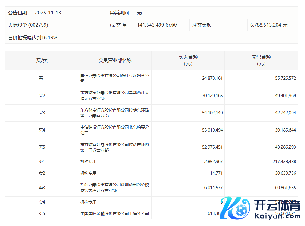 天空股份当天涨3.66%开云官方,有3家机构专用席位净卖出4.02亿元天空股份当天涨3.66%,有3家机构专用席位净卖出4.02亿元