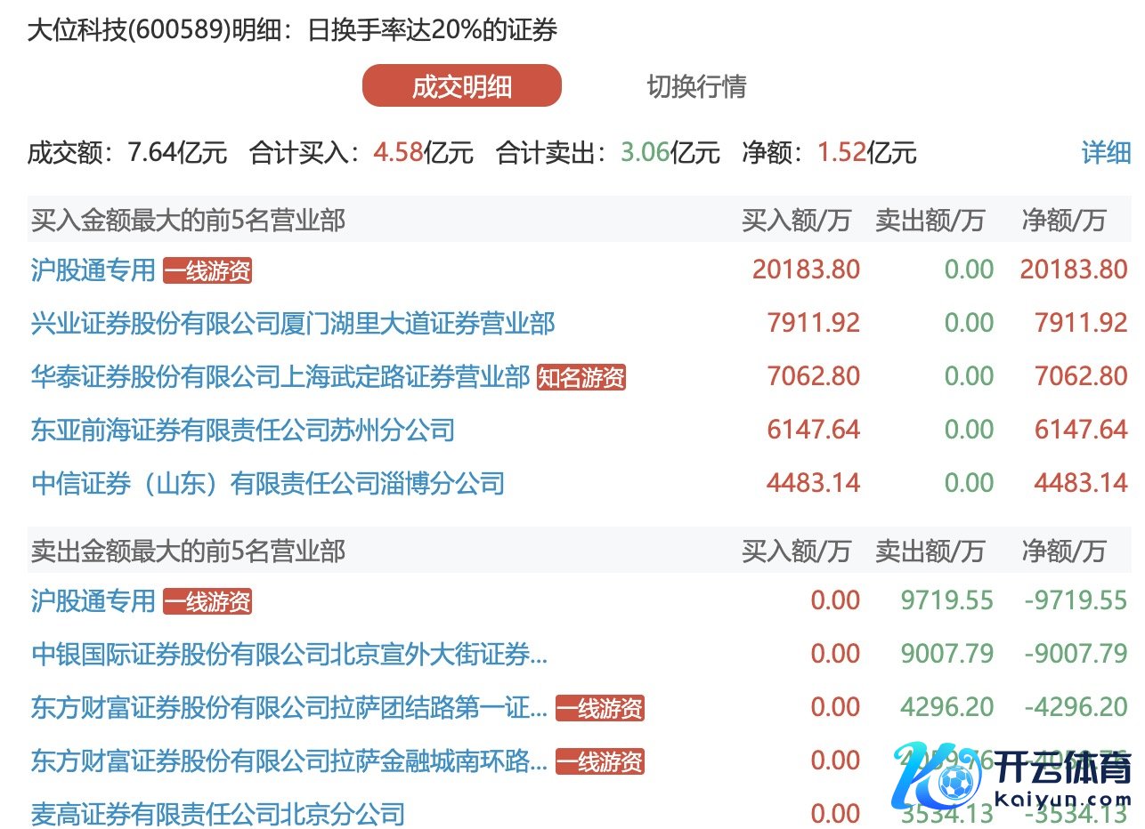 大位科技当天涨7.17% 沪股通席位买入2.02亿元并卖出9719.55万元大位科技当天涨7.17% 沪股通席位买入2.02亿元并卖出9719.55万元