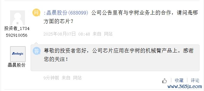 晶晨股份:公司芯片愚弄在宇树的机械臂居品上