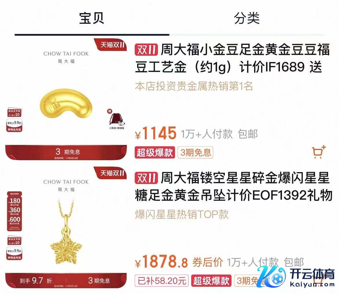 界面新闻记者属意到,克重小的轻型黄金家具收到线上阔绰者的把稳。以周大福为例,其收罗店铺的销量榜单上,基本是千元价位的小金豆、小金饰。